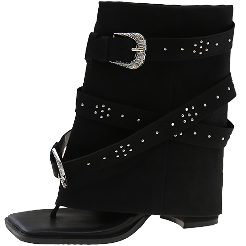 凉靴复古夹趾裤 黑色气质凉鞋 粗跟百搭网红爆款 新款 管靴 女2025夏季