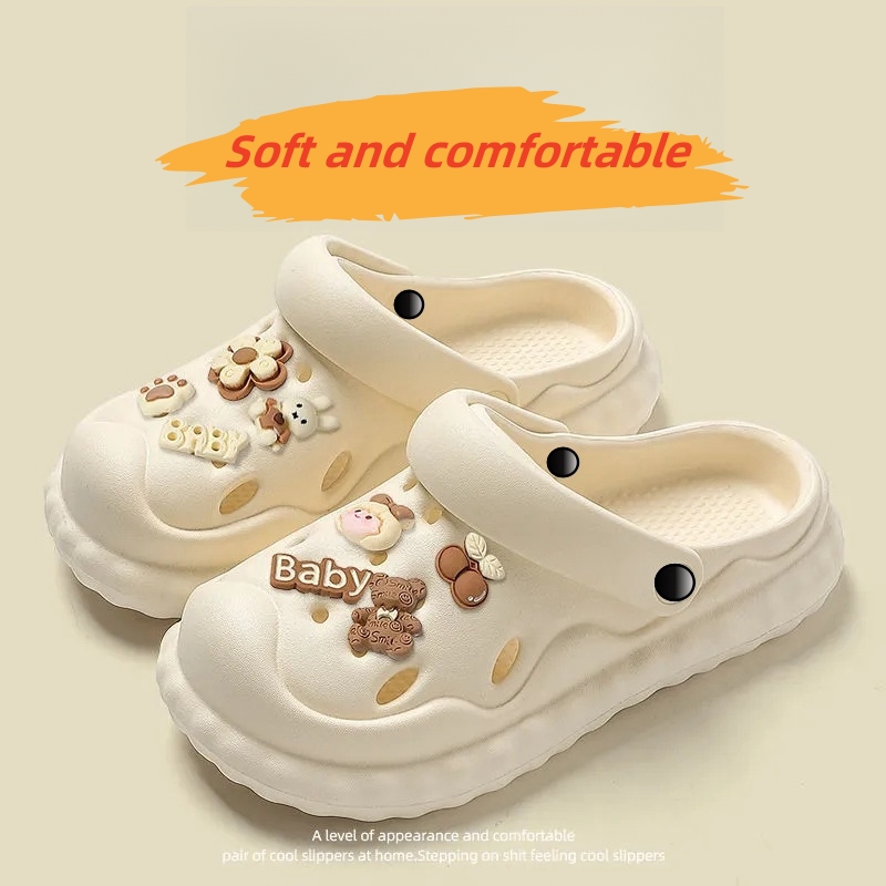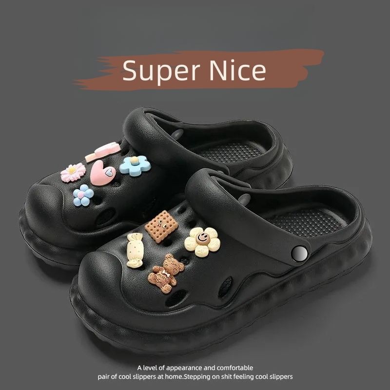 女学生 厚底防滑居家包头凉拖鞋 孕妇可穿洞洞鞋 女士踩屎感外穿夏季