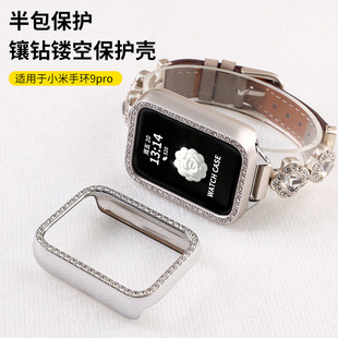 高级配件 时尚 适用于小米手环9pro边框壳保护壳新款 仿钻半包保护套智能运动手环9pro防摔防磕pc表壳外壳女款