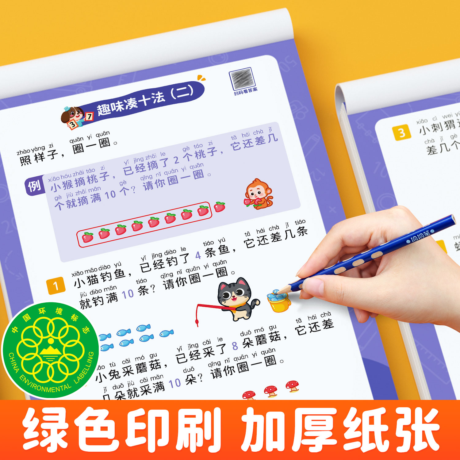 凑十法借十法幼小衔接专项训练20以内加减法分解与组合数学思维启蒙幼儿园大班学前班一年级天天练认识时间和人民币练习册每日一练