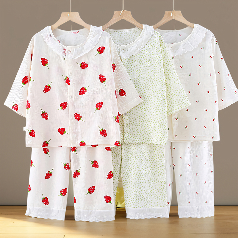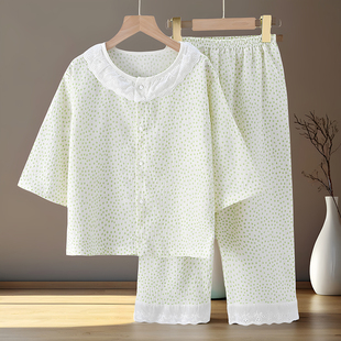 七分袖 夏季 中大童女孩花边开衫 女童睡衣套装 家居服空调服 薄款