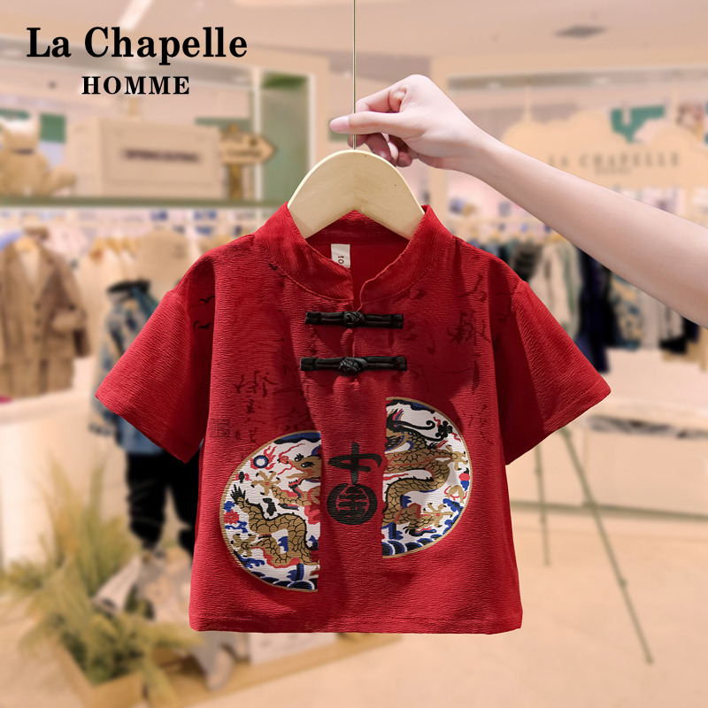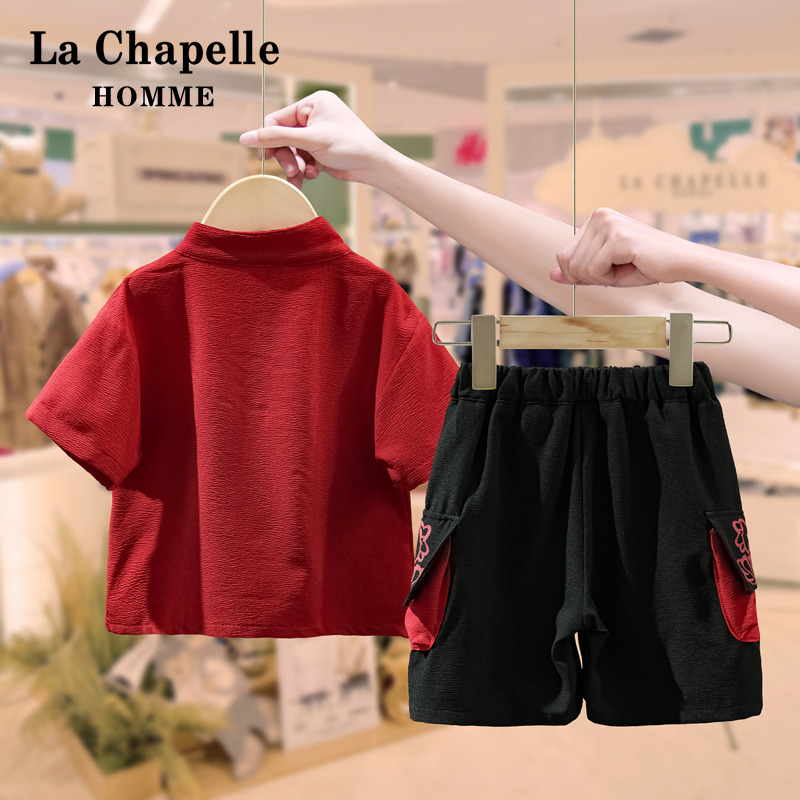 儿童宝宝唐装 拉夏贝尔童装 2025新款 夏季 国风两件套 男童汉服套装