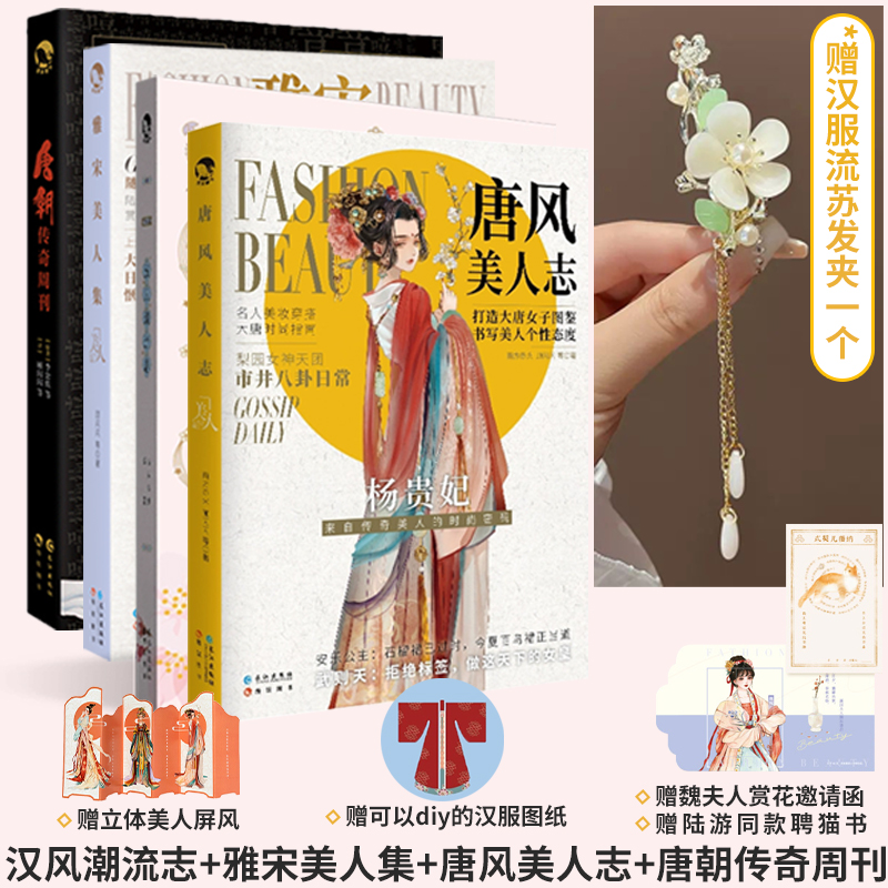 美人风华志 雅宋美人集 唐风美人志 唐朝传奇周刊 古人很潮漫娱图书 赠团扇汉服流苏发夹自选 套装 汉风潮流志