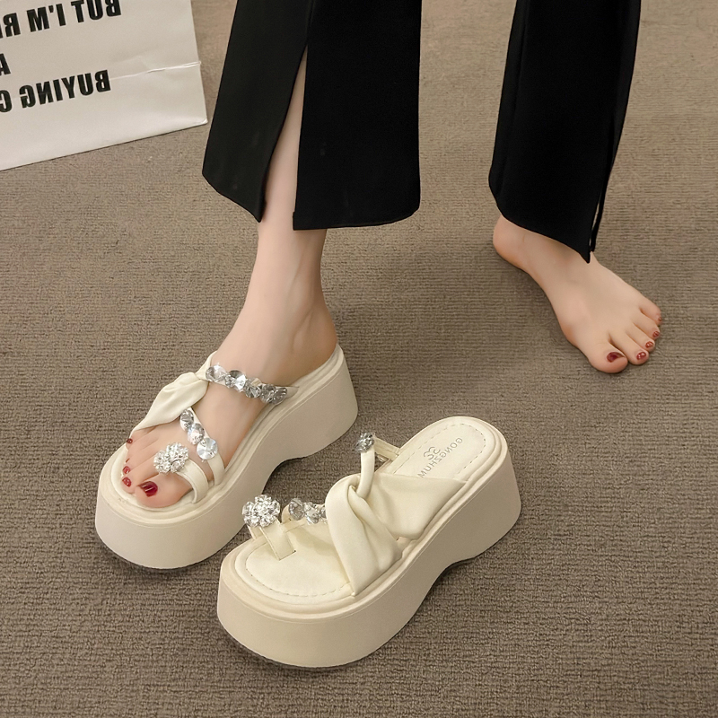 套趾水钻高跟凉鞋 配裙子时尚 女夏外穿2025新款 松糕厚底增高凉拖鞋