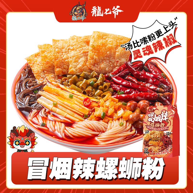 龙七爷方便速食柳州螺蛳粉340g爆爆浓汤冒烟辣广西特产螺狮粉速食