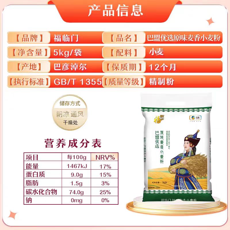 中粮福临门巴盟优选原味麦香小麦粉5kg高筋面粉家用10斤河套平原