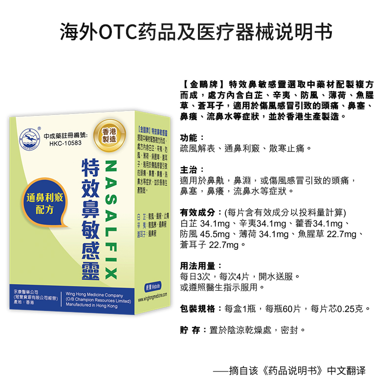香港进口通窍鼻炎颗粒过敏性鼻炎药通鼻流鼻涕鼻塞鼻痒换季 感冒