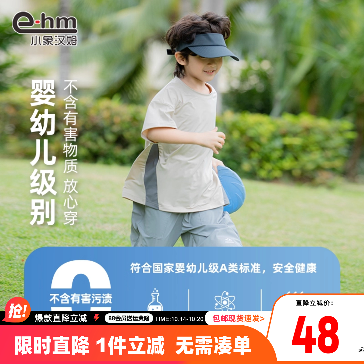 速干 新款 小象汉姆童装 T恤凉感2025夏装 轻薄运动上衣 男童短袖