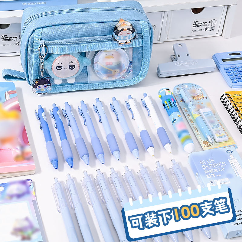 双层透明网纱笔袋考试专用大容量文具袋简约中考高考ins风2025新款 流行高颜值女孩子男生初中生高中生铅笔盒