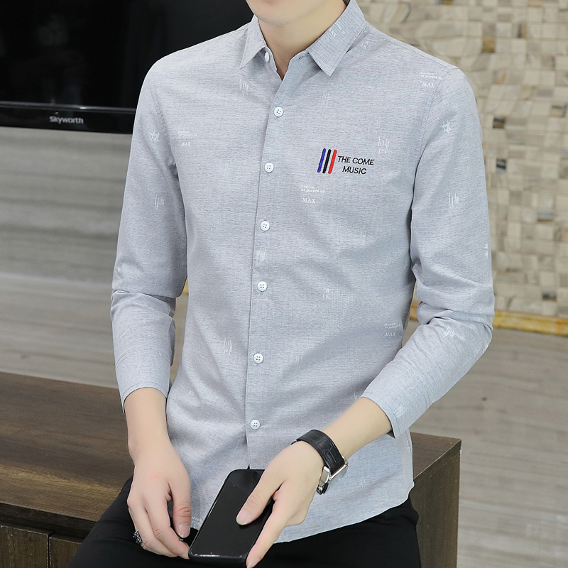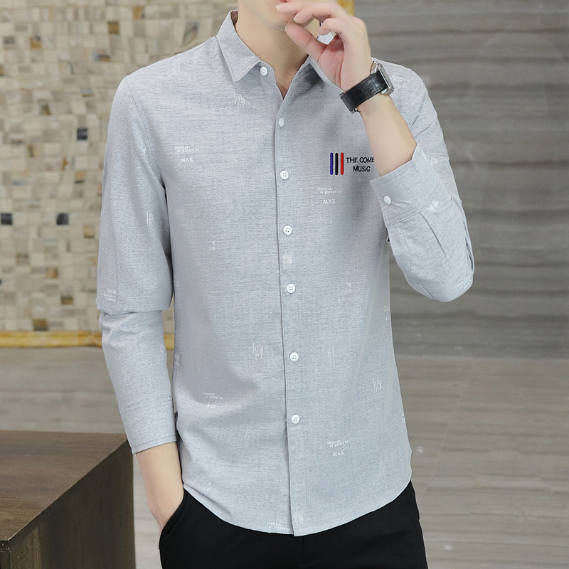 韩版 男士 衬衫 长袖 简约休闲职业年轻商务翻领衬衣上班加绒外套 冬装