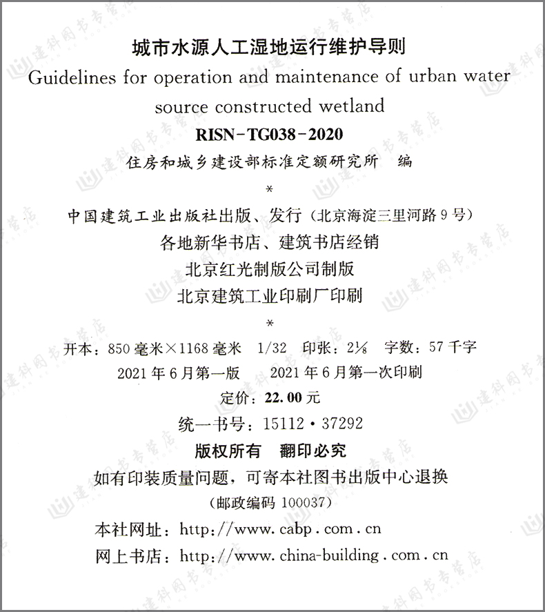 TG038 社出版 2020城市水源人工湿地相关标准规范 现货城市水源人工湿地运行维护导则中国建筑工业出版 2021新版