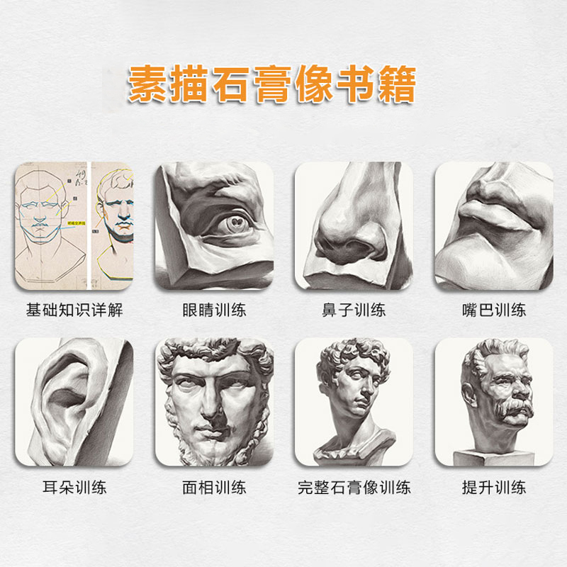 对路素描石膏像 祁达 零基础石膏头像肖像五官结构头骨画画书籍八开照片临摹范本画册联考高考联考美术绘画入门教程学教材书籍