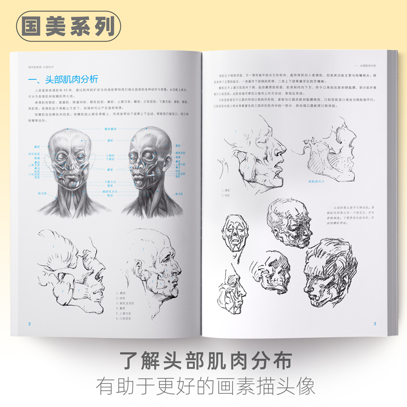 跟我画头像肌肉临摹书籍国美素描零基础照片结构人像入门教程材画册铅笔儿童学画画写生绘画解析手绘美术自学