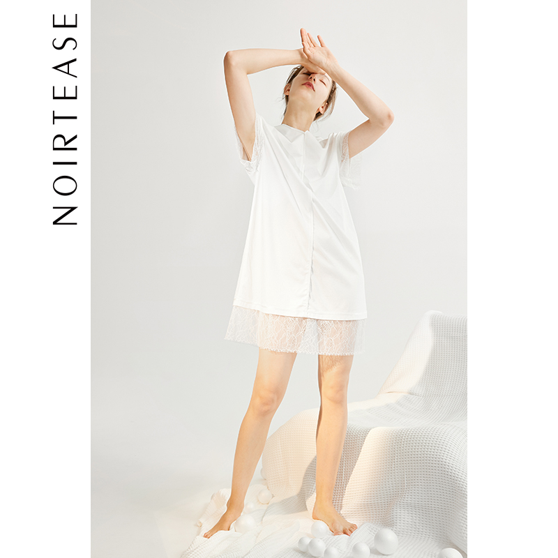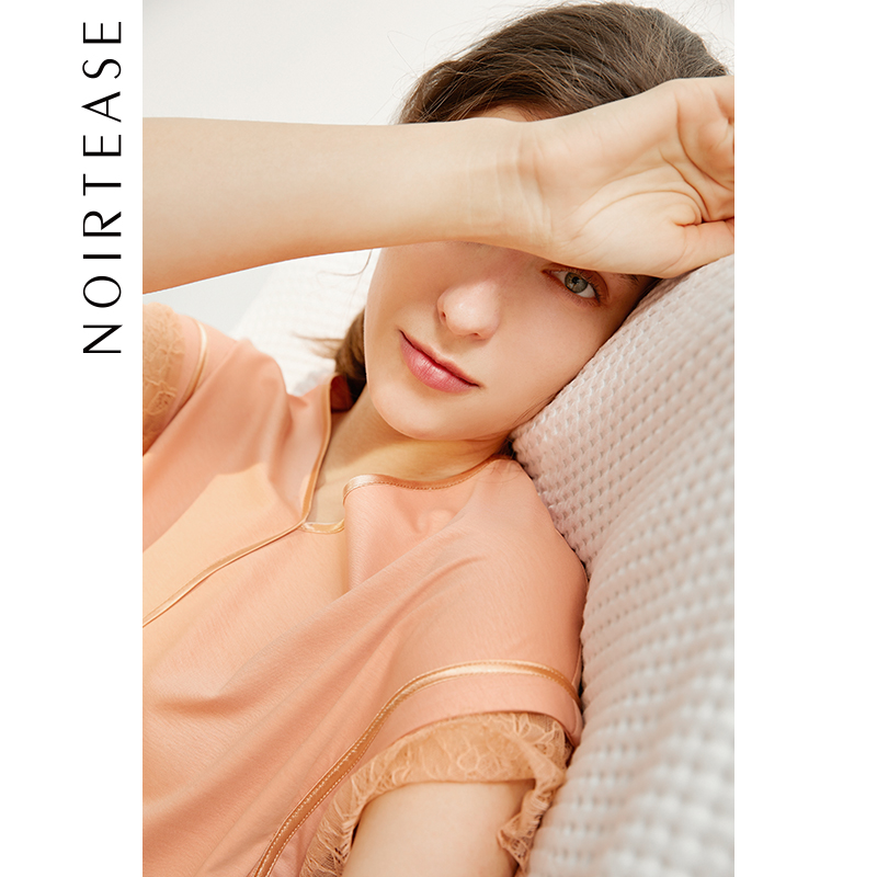 NoirTease奈黎诗夏季 V领桑蚕丝棉质睡裙家居服可外穿 睡衣女士薄款