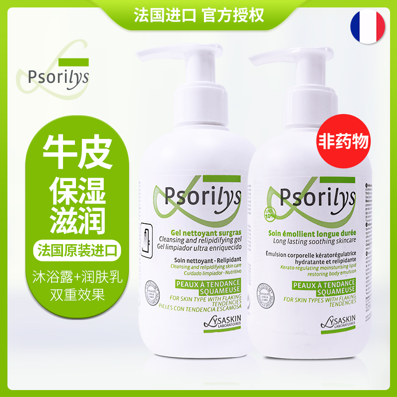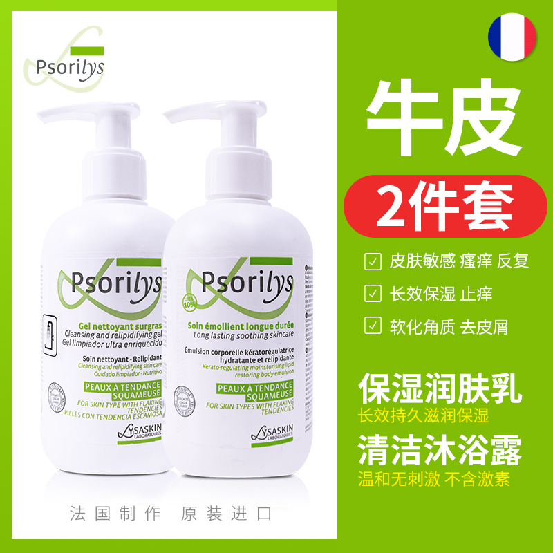 补水止痒滋润身体乳非药物 Psorilys牛皮温和清洁沐浴露 2件套