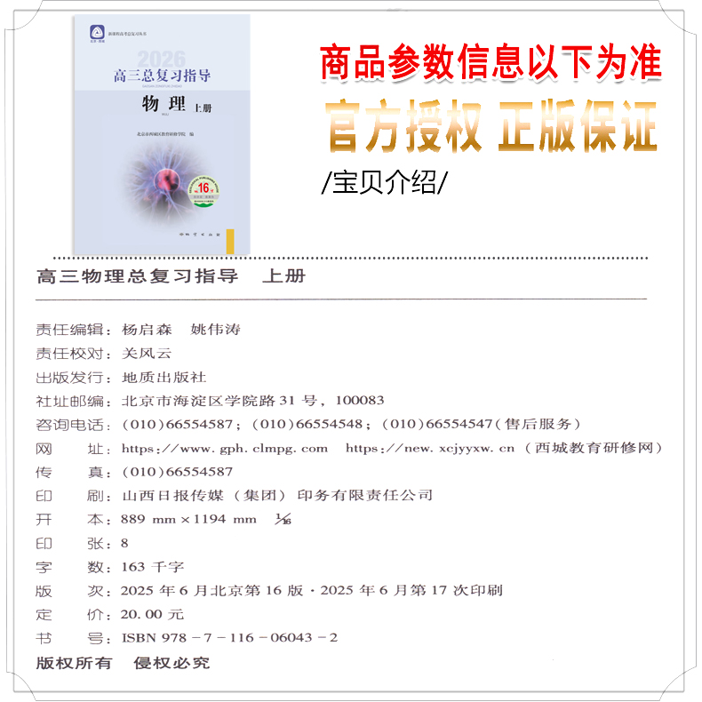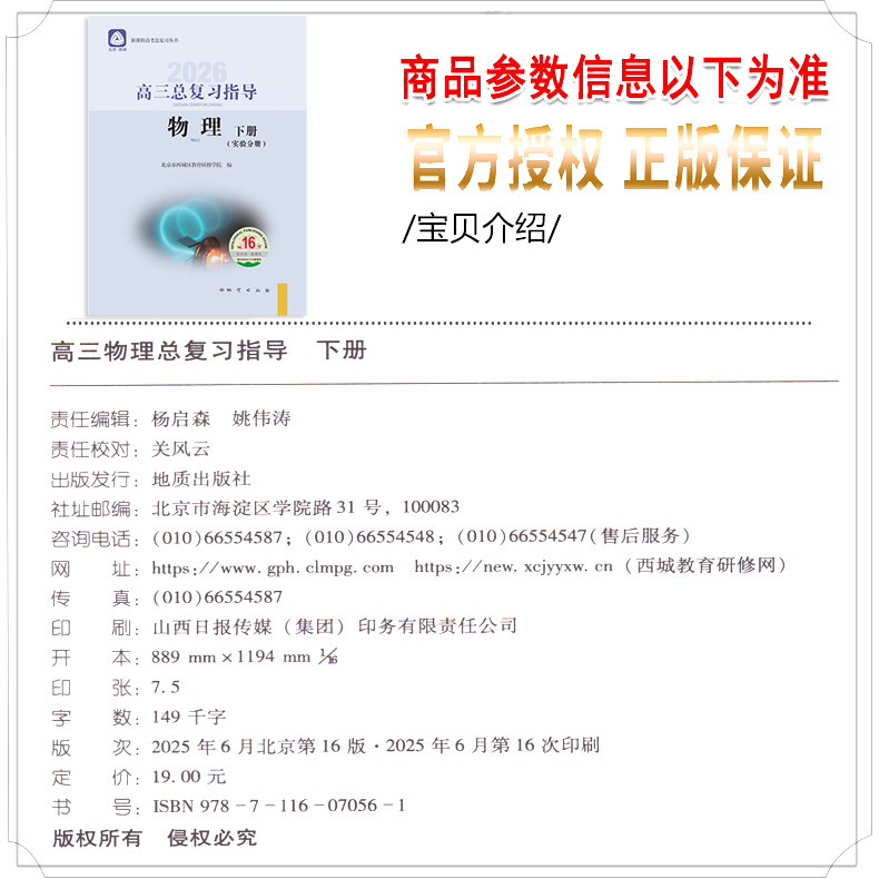 2026高三物理总复习指导上下册第16版 北京市西城教育研修学院编 北京西城学习探究诊断高3高考总复习物理上下册学探诊第十六版
