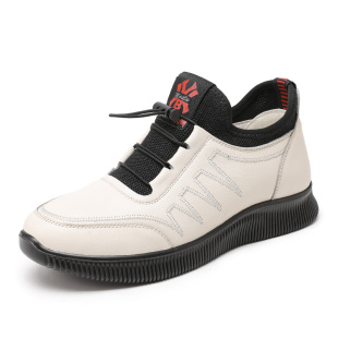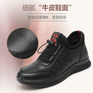 松紧带防滑旅游鞋 大码 女清仓 中年软底运动休闲女鞋 平底真皮妈妈鞋