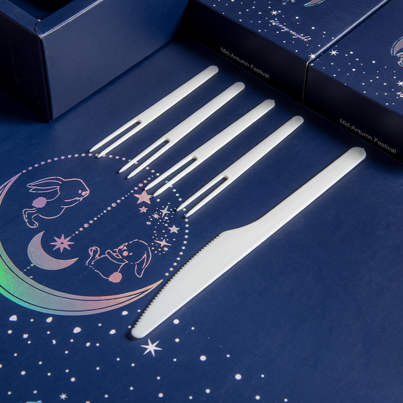 中秋月饼刀叉一次性套装 高档食品级塑料 组合批发1刀4叉独立包装