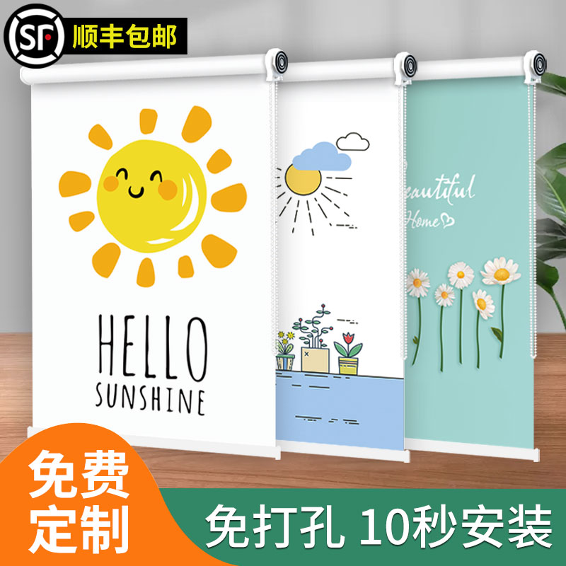 卫生间卷帘窗帘厕所浴室厨房防水遮光遮阳窗户遮挡拉式 免打孔安装