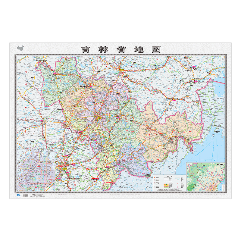 吉林省地图 饰贴画行政交通地图挂图 大尺寸106 办公室家用背景墙装 中图社分省系列 76cm加厚版 2025年新版