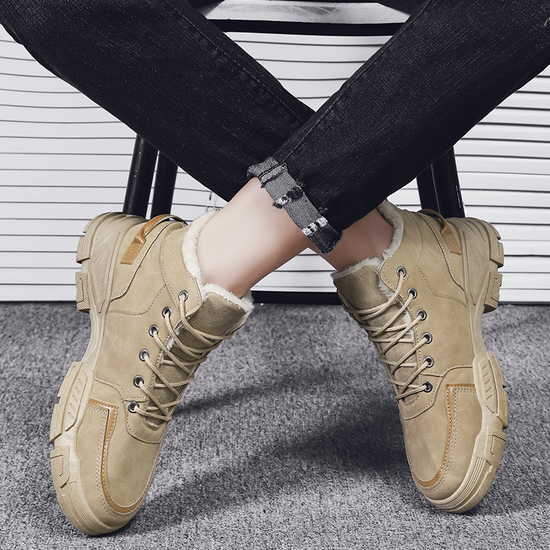 男鞋 加绒保暖棉鞋 子高帮马丁靴男士 靴雪地男靴潮鞋 中帮工装 秋夏季