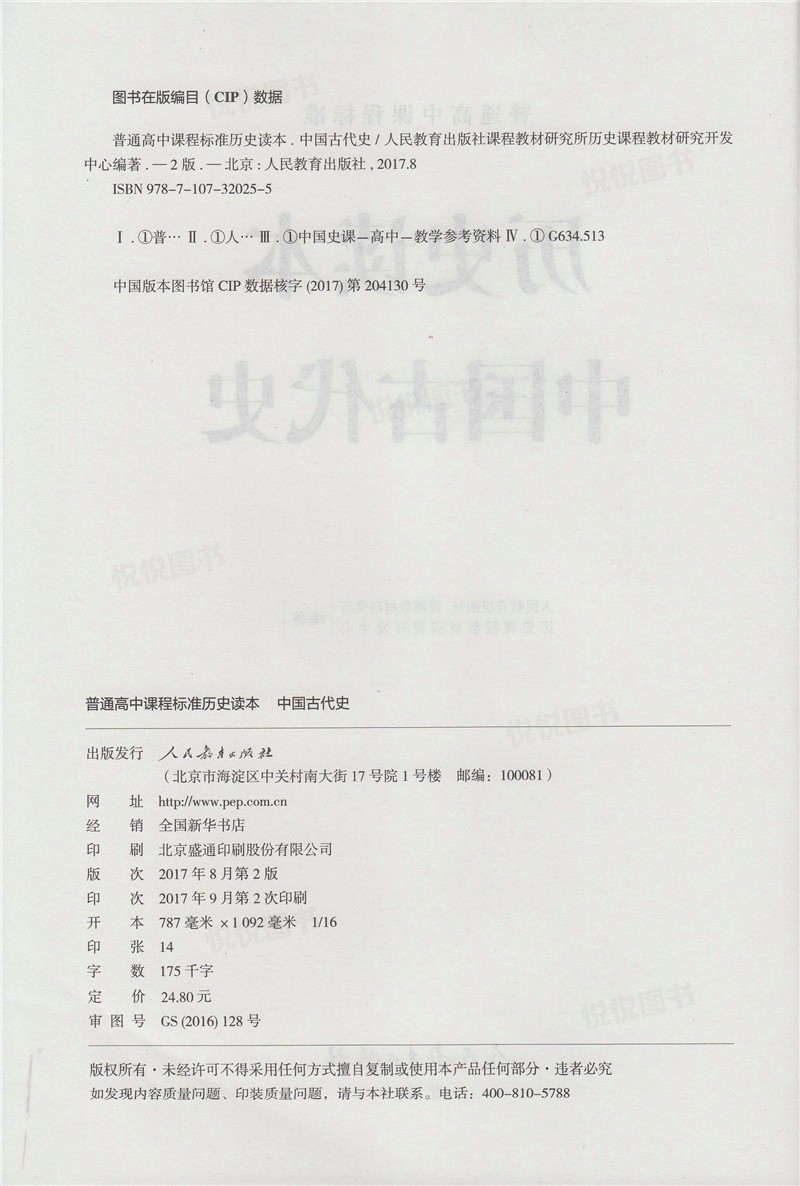 历史读本 课程教材研究所 人民教育出版 人教版 社课程教材研究所编 普通高中课程标准 社 高中历史课本 中国古代史