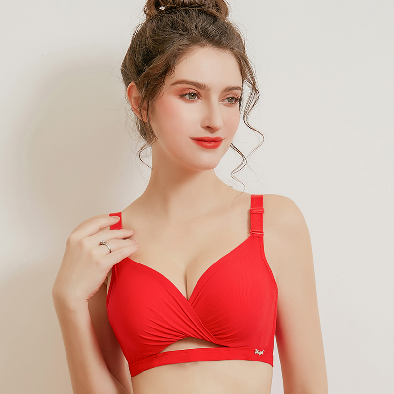 红色本命年内衣女结婚虎年性感惑内裤 小胸聚拢红色转运文胸罩套装