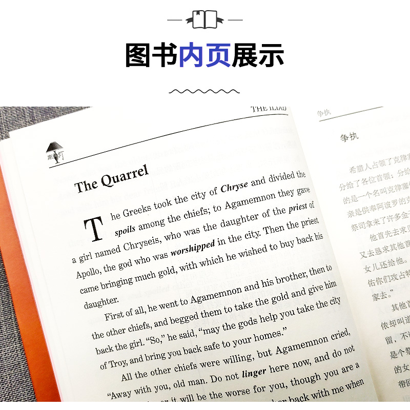 小说 书籍初中高中大学生四六级分级阅读英文版 读本名著床头灯5000词系列 英汉互译双语课外读物中英文对照正版 伊利亚特英语