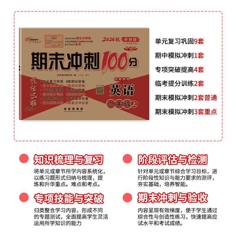 期末冲刺100分小学6六年级英语试卷上册外研社外研版 期中期末练习册题 三年级起点三起试卷测试卷子附英语听力训练68所名校图书单元
