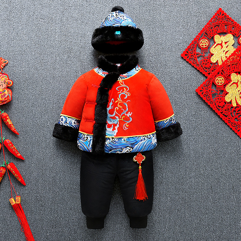 喜庆拜年服周岁礼服小孩过年衣服 男童新年婴儿童装 男宝宝唐装 冬季