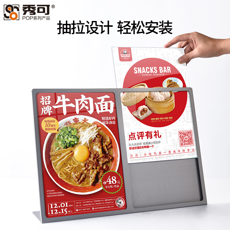 奶茶店金属菜单展示牌点餐牌加厚不锈钢广告牌A4台卡亚克力酒吧台桌面立牌展板透明菜单板价格牌设计制作定制