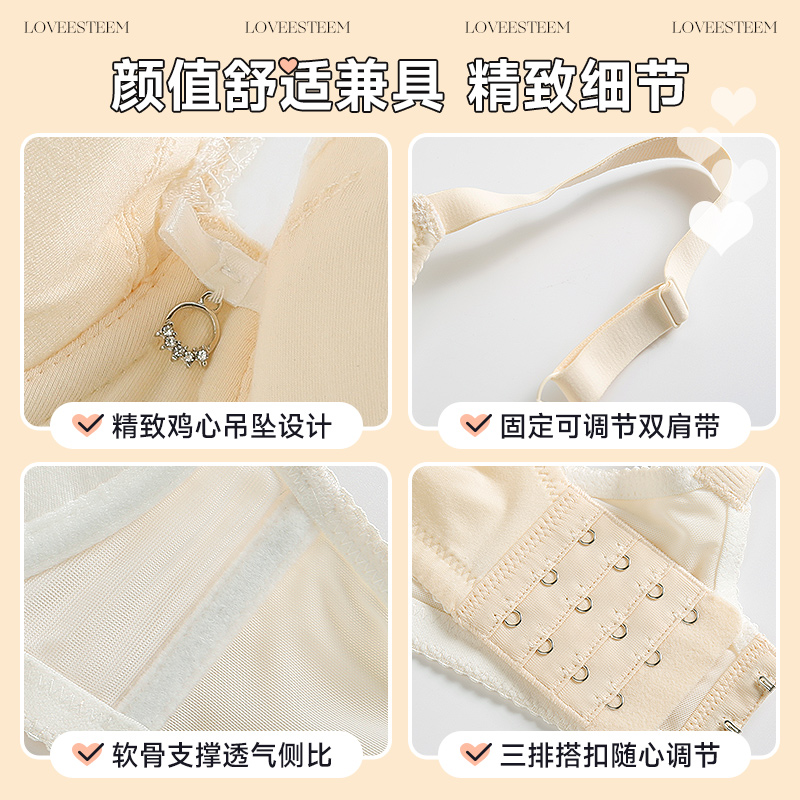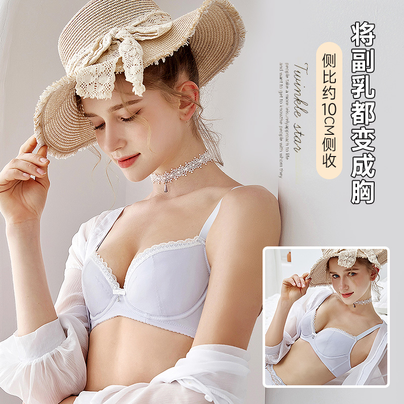 好奇蜜斯大胸显小胸内衣女性感夏薄防下垂法式 纯欲蕾丝文胸罩套装