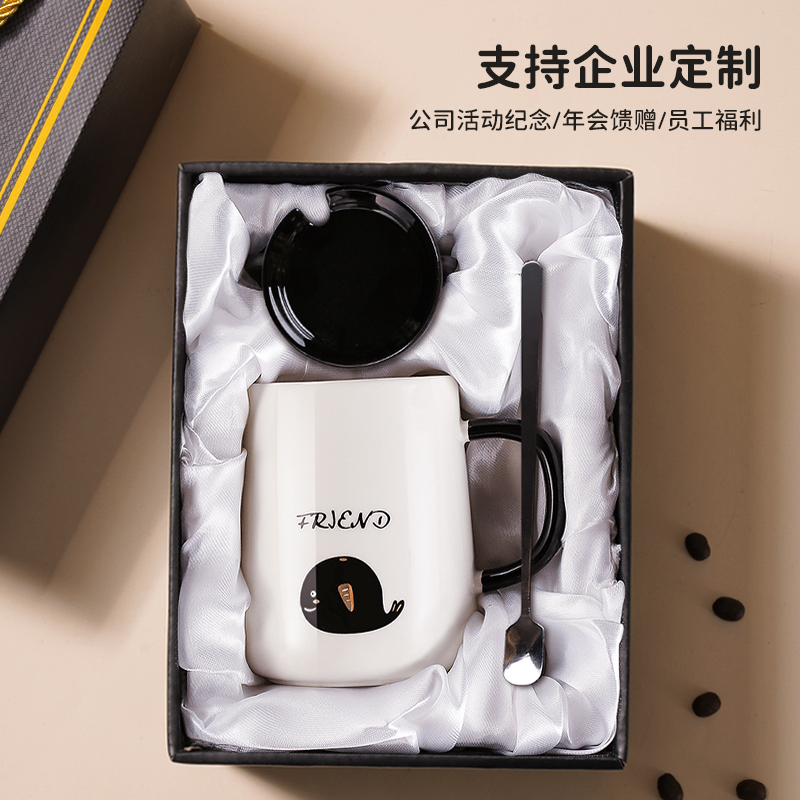马克杯咖啡杯带盖带勺陶瓷杯子情侣水杯女办公室茶杯男生家用定制