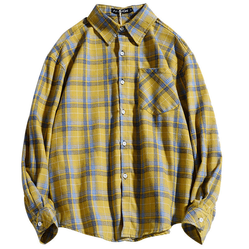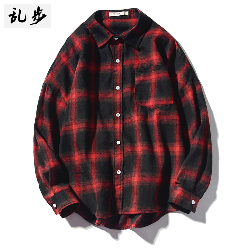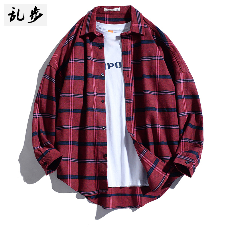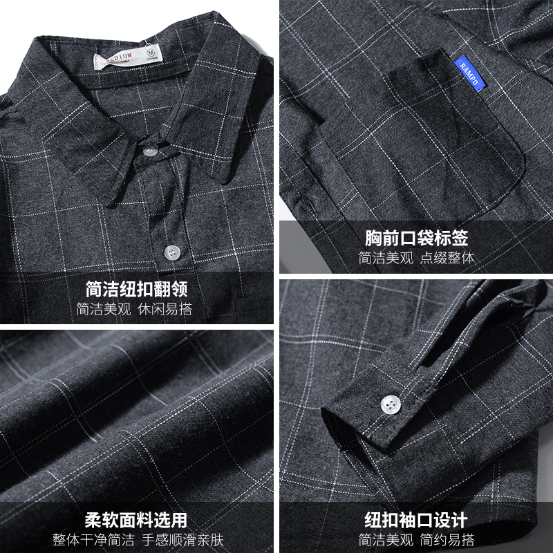 长袖 男士 宽松休闲衬衣服韩版 潮流帅气工装 外套 春秋季 寸衫 格子衬衫