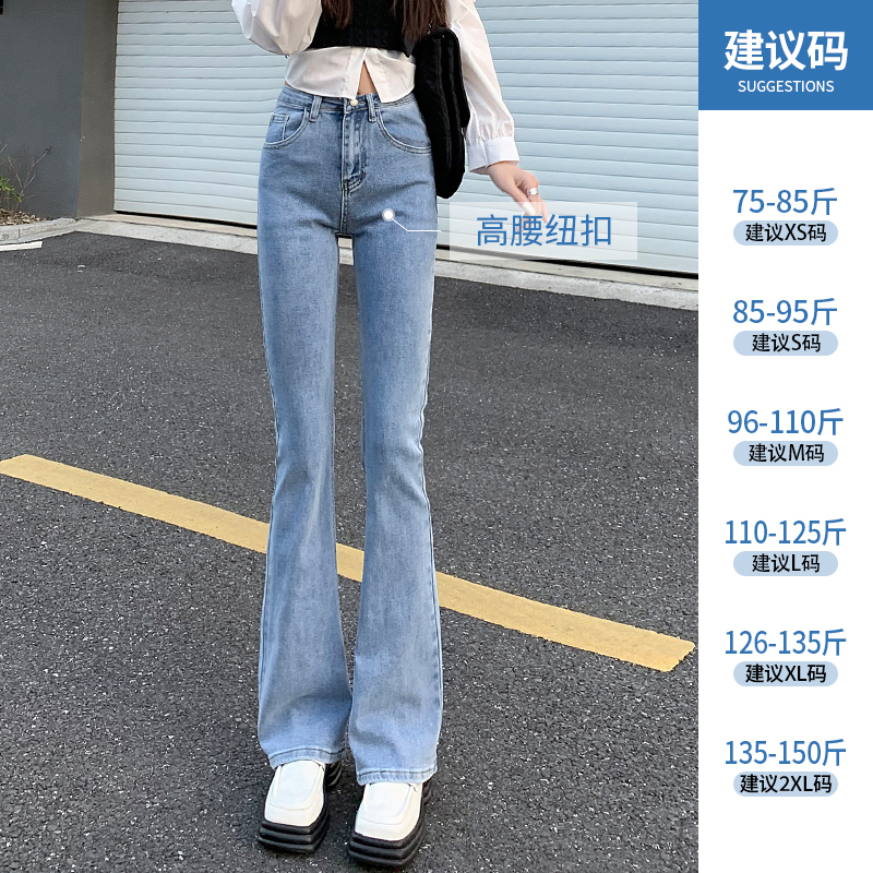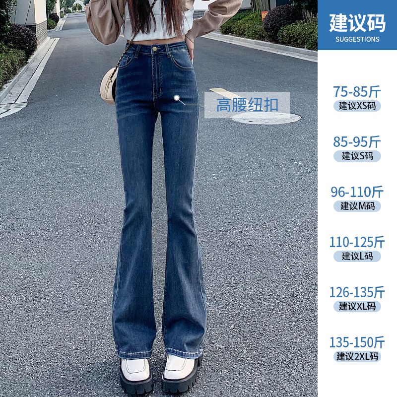 子潮 春秋宽松显瘦喇叭拖地阔腿裤 高腰微喇牛仔裤 女直筒2021年新款