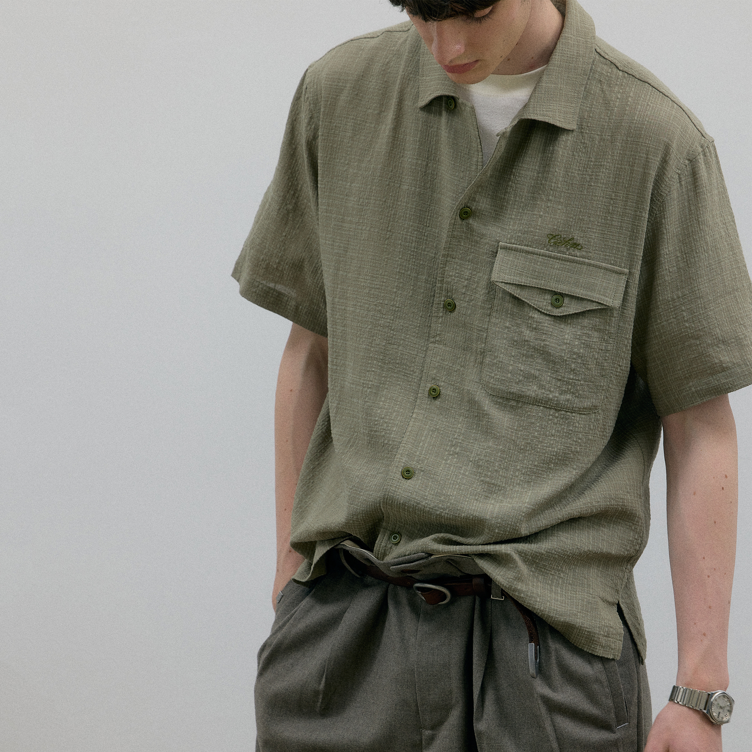 25秋新花纹刺绣上衣男装 海澜之家山不在高纯棉牛津纺长袖 休闲衬衫