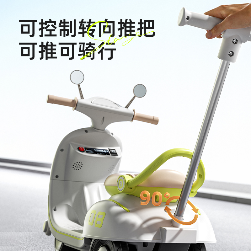 儿童电动车摩托车三轮可坐人男女孩宝宝遥控充电带后斗推行玩具车