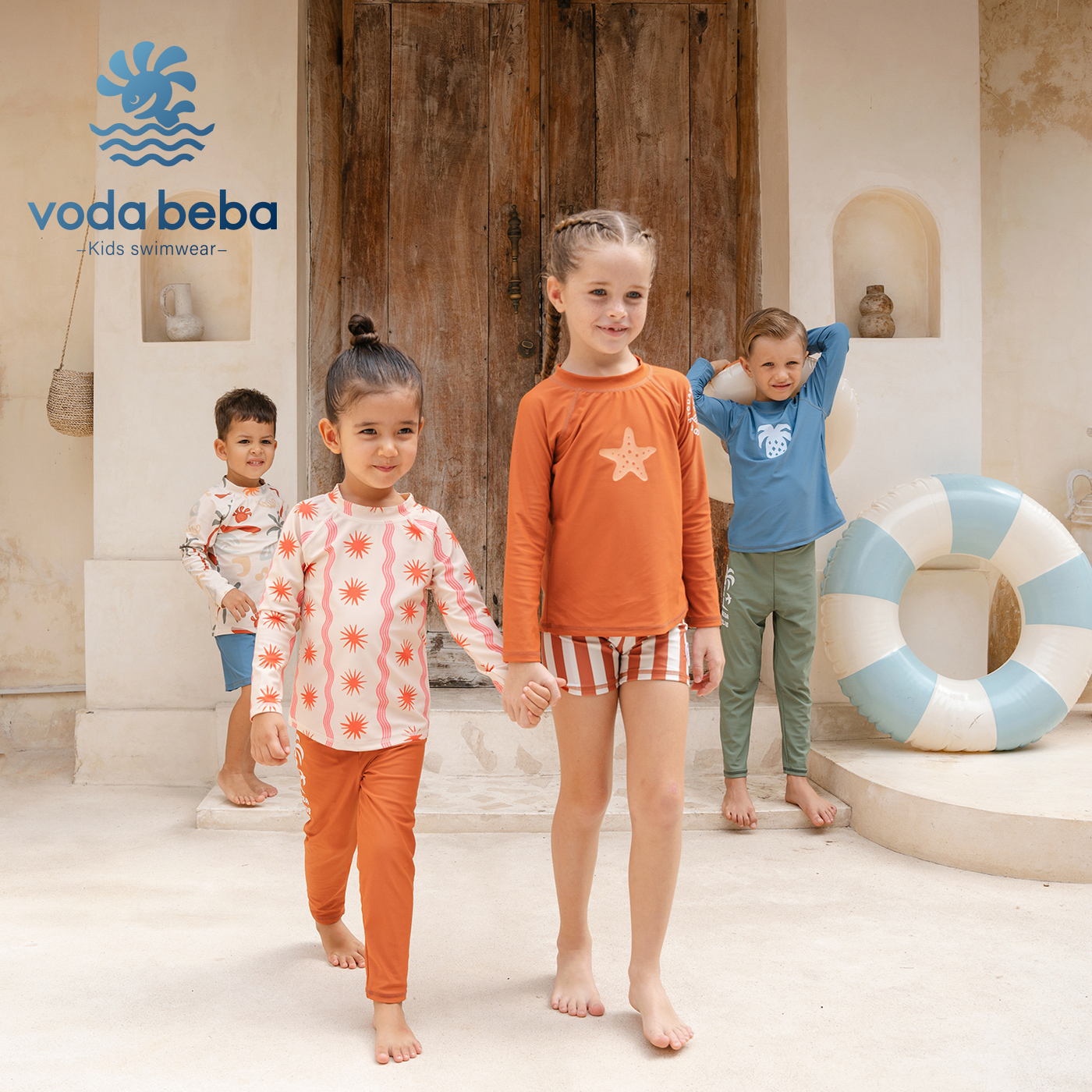 防晒速干儿童泳裤 vodabeba 长裤 男女童分体长袖 北欧风儿童泳衣裤