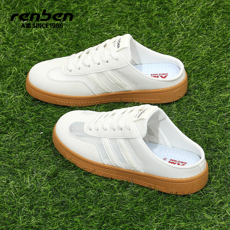 网面透气轻便白色厚底包头懒人半拖女鞋 新款 女2025夏季 人本德训鞋