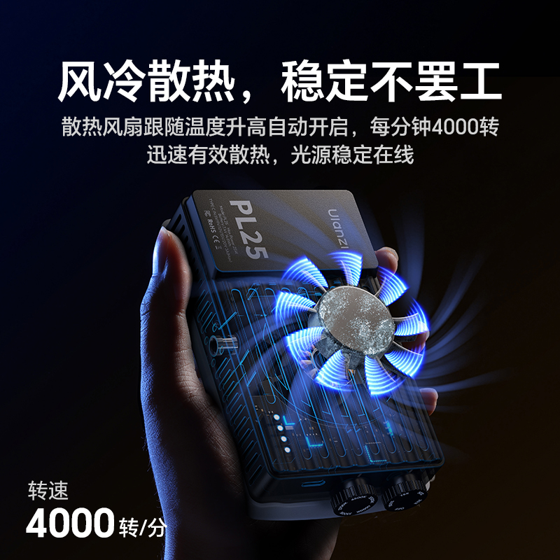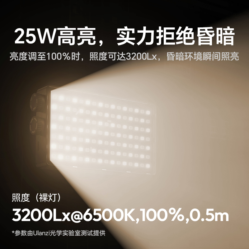 Ulanzi优篮子 打光灯手持视频拍摄柔光灯相机微单反常亮灯 PL25直播补光灯25W大功率双色温口袋摄影灯便捷式