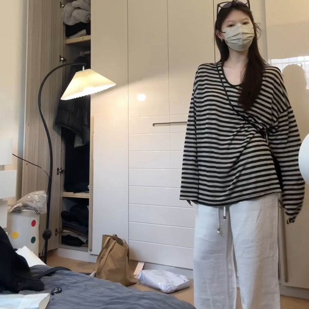 长袖 复古撞色条纹防晒罩衫 宽松U领薄款 2025新款 外搭上衣 T恤女夏季
