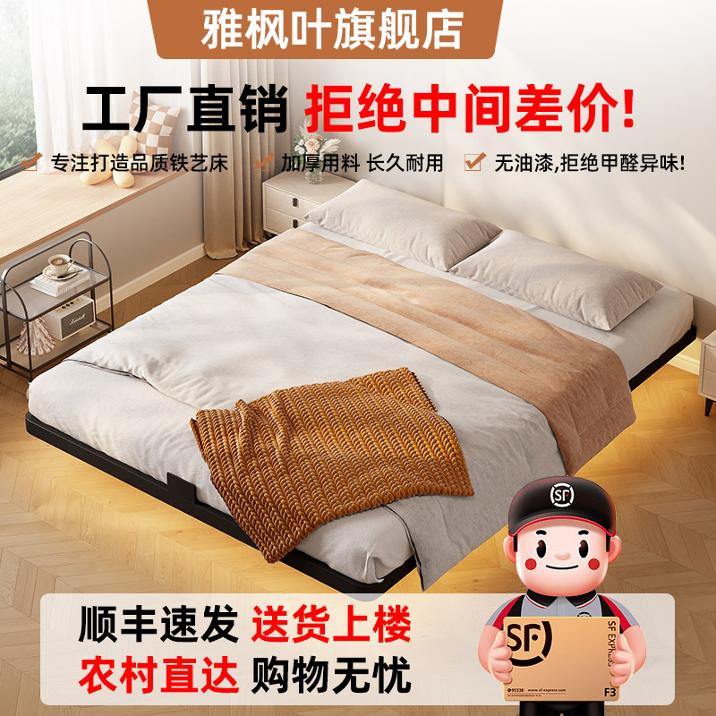 榻榻米铁艺床家用双人床小户型任意尺寸无床头靠背钢木床定制矮床
