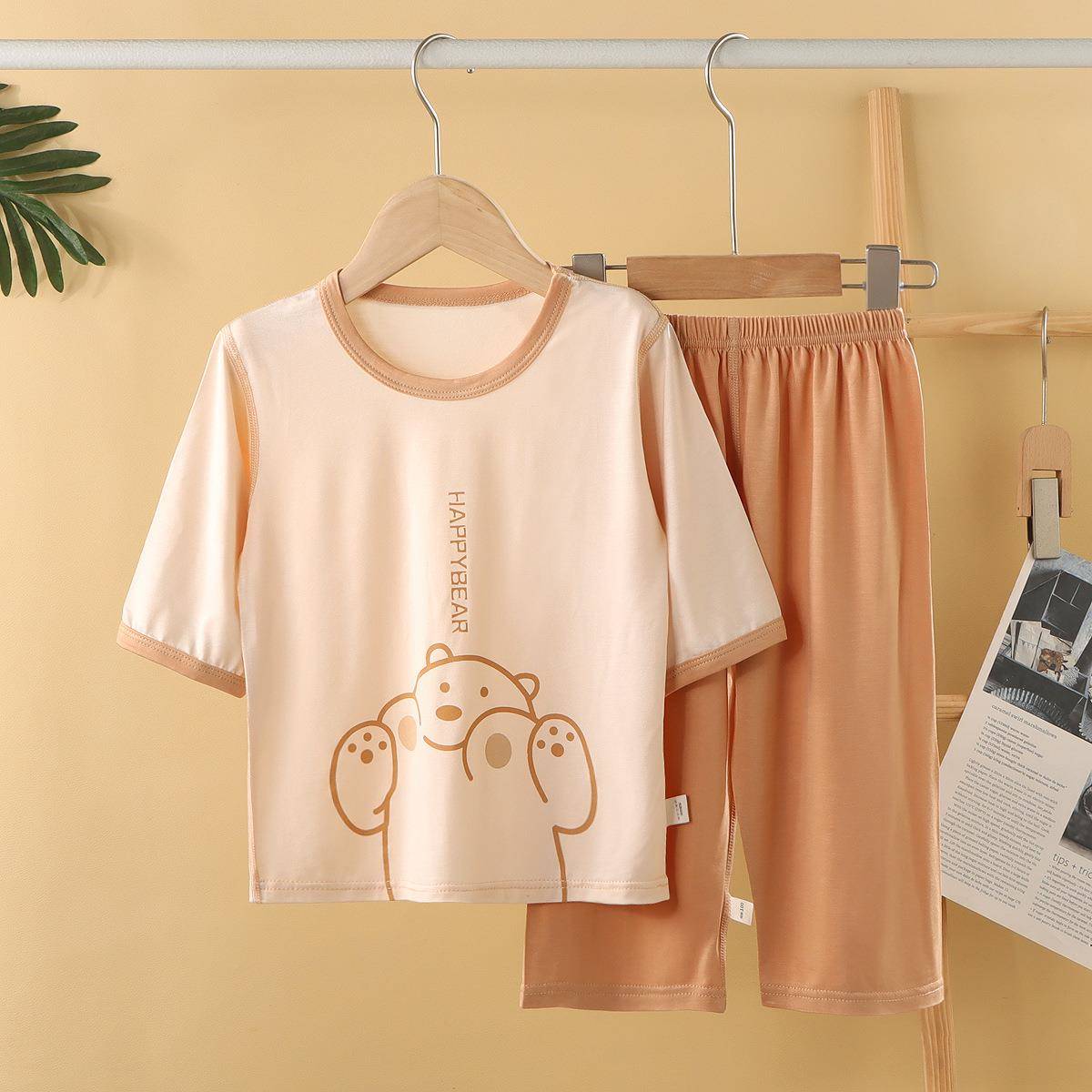 薄款 宝宝韩版 睡衣那男童女童空调服 天丝冰韩棉家居服套装 儿童夏季