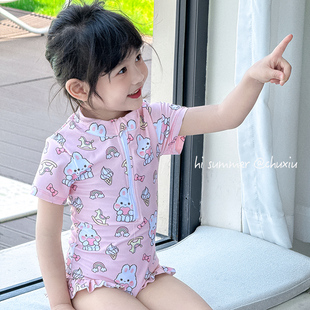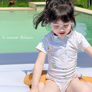 专业游泳衣中小童女孩速干学生游泳套装 新款 儿童泳衣女童连体短袖