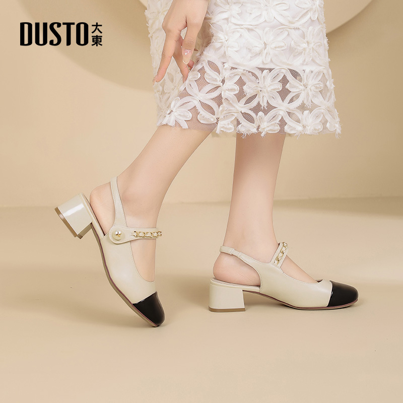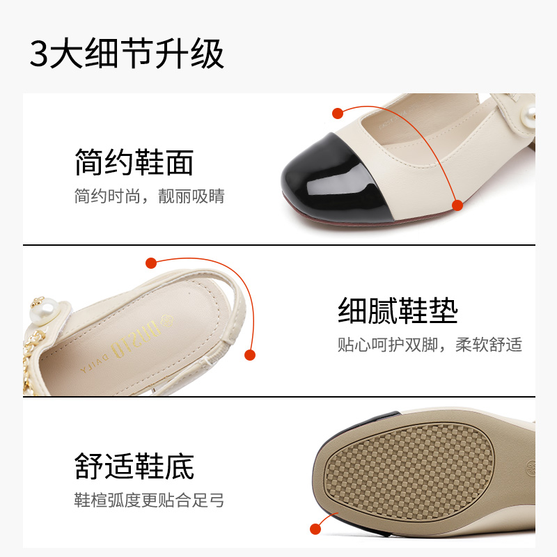 简约舒适粗跟中跟魔术贴玛丽珍女鞋 大东后空凉鞋 时尚 新款 2025夏季