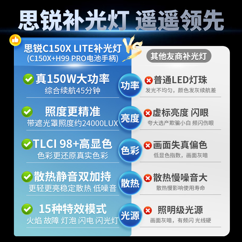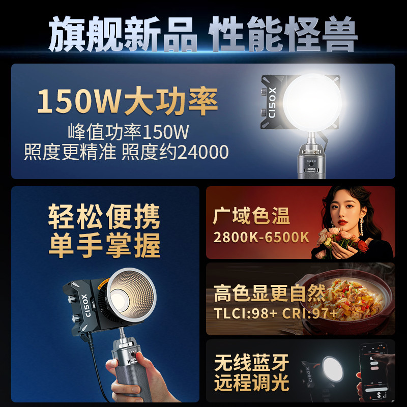 思锐C150X 包邮 LITE补光灯150w高亮COB美颜灯户外便携人像漫展婚礼手持外拍灯单兵工作棚拍直播灯 顺丰