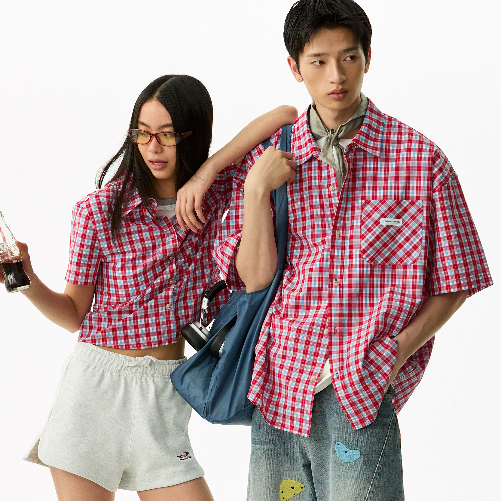 情侣宽松休闲短款 短袖 衬衣 野生无限韩系格纹衬衫 江南先生NewJNXS