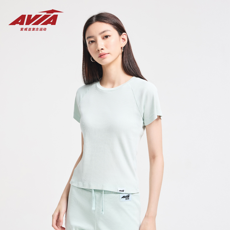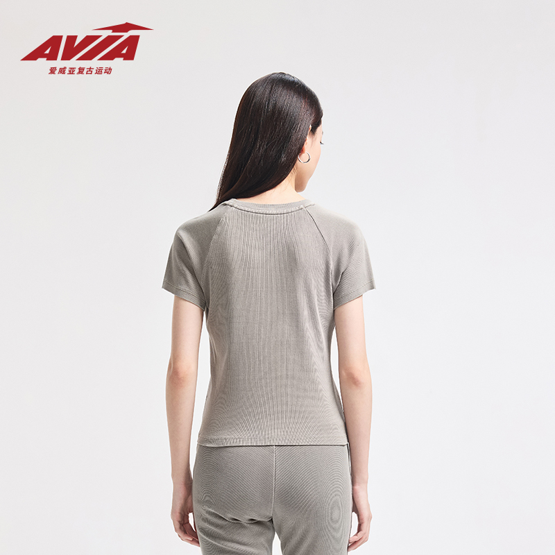 T恤女水洗做旧复古运动上衣 AVIA爱威亚991系列短袖 鞠婧祎同款
