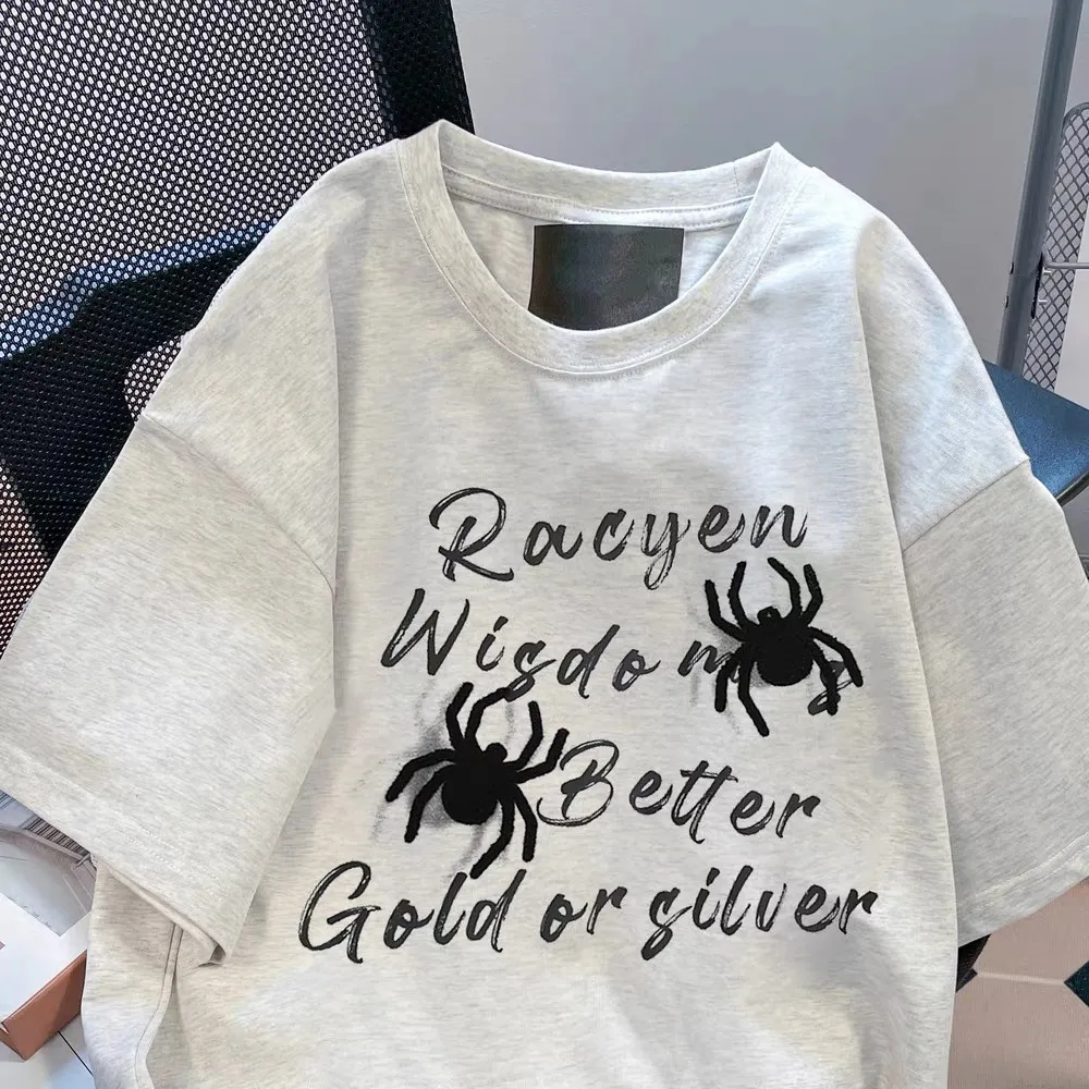 情侣纯棉半截袖 T恤男女夏季 上衣 300斤潮牌蜘蛛字母印花短袖 特大码