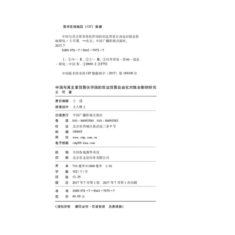中国与其主要贸易伙伴国 双边贸易自由化对就业影响研究